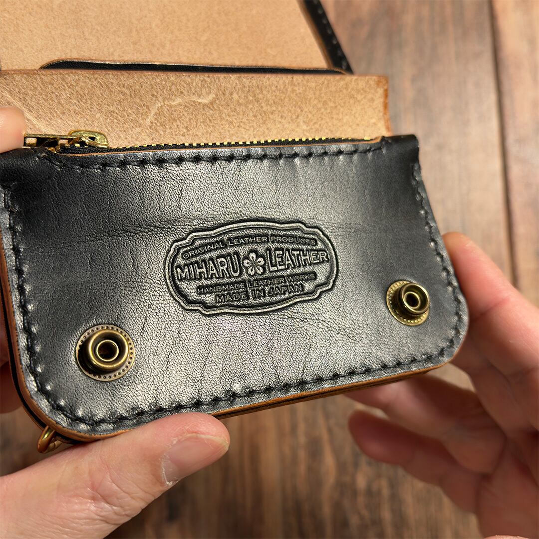 昭南本ヌメを使用した、三春レザーオリジナルのショートトラッカーウォレットの紹介です。