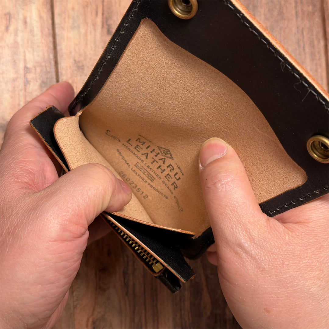 昭南本ヌメ使用のお札を折らずに収納できるショートトラッカーウォレット|TWS06-SHN