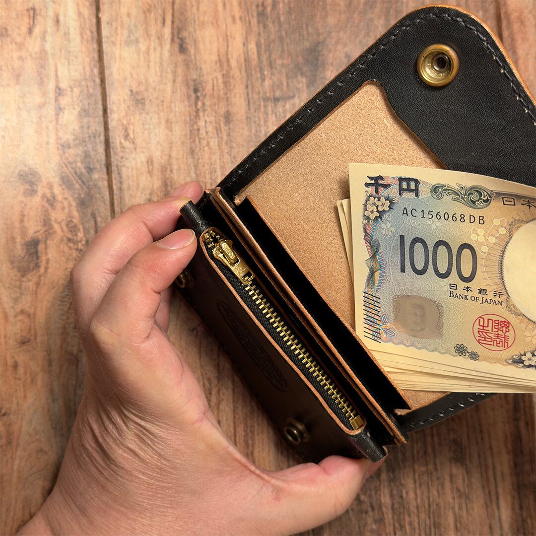 3層構造を採用し、紙幣を折らずに収納・小銭・カードをしっかり収納。メインウォレットとしても、サブ財布としても活躍してくれる一品です。