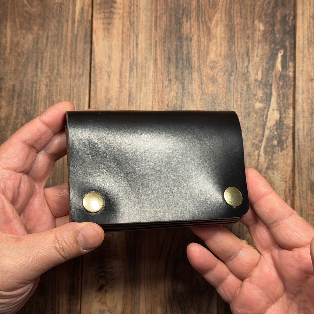 クロムエクセル 茶芯ブラックのショートトラッカーウォレット|革の質感を楽しむ逸品|TWS03-BCE-02