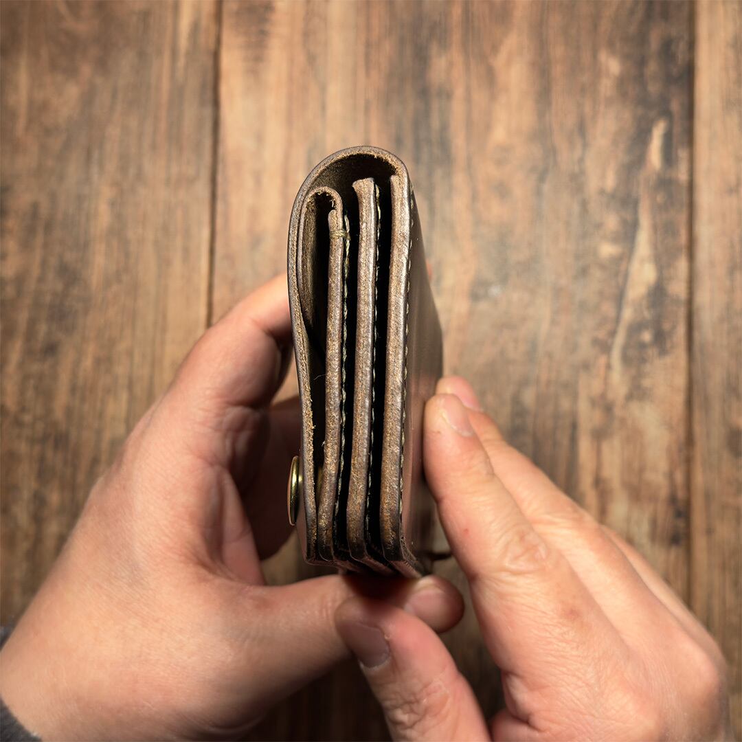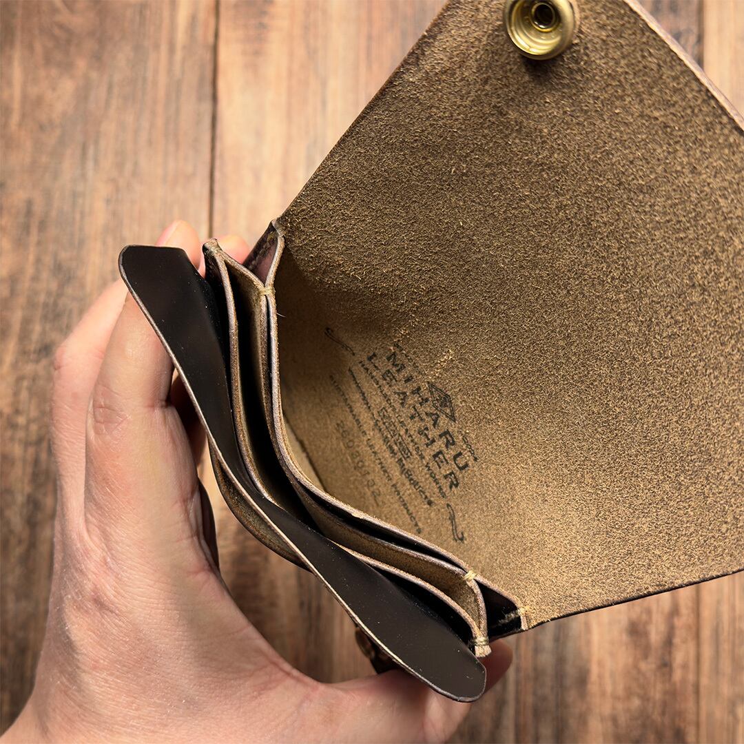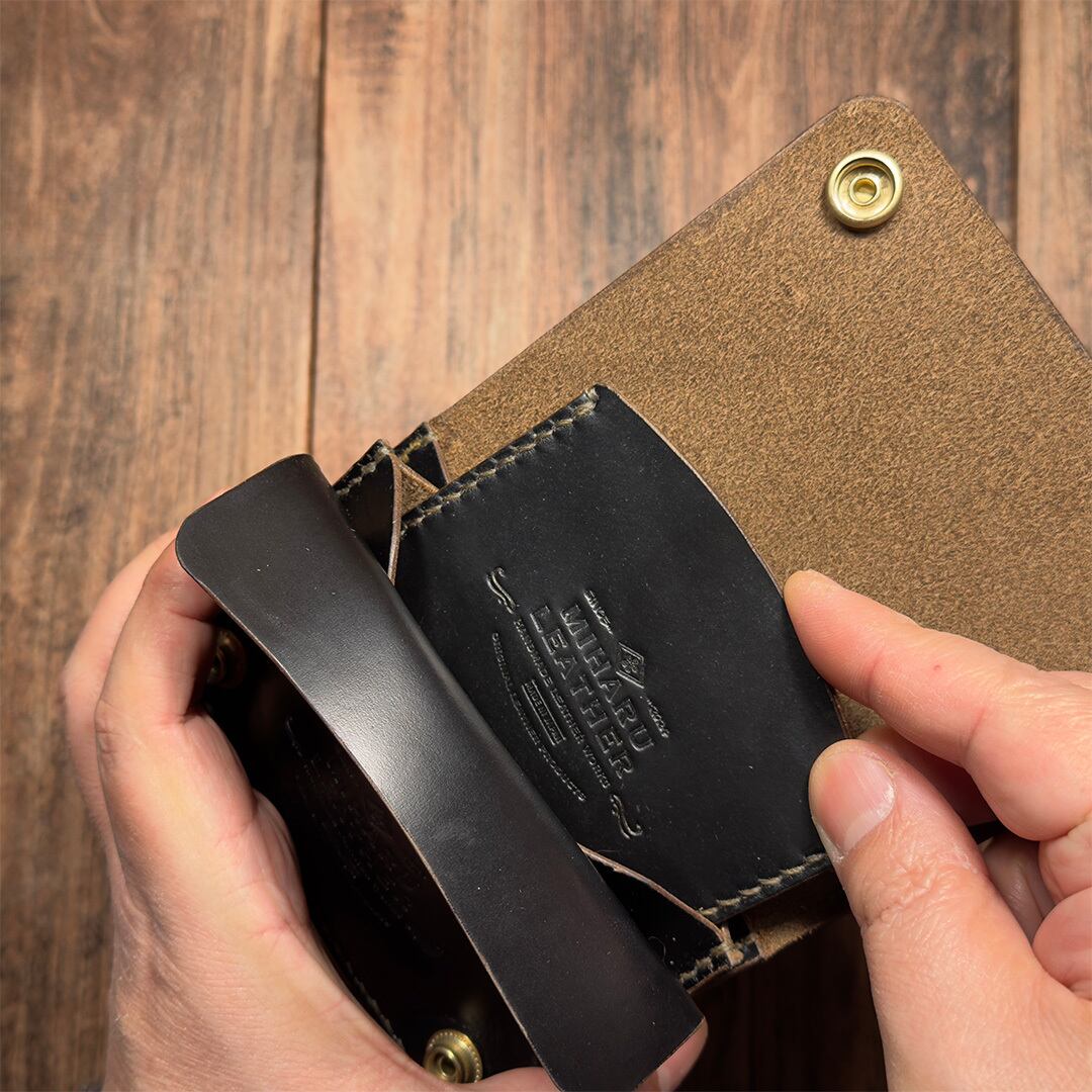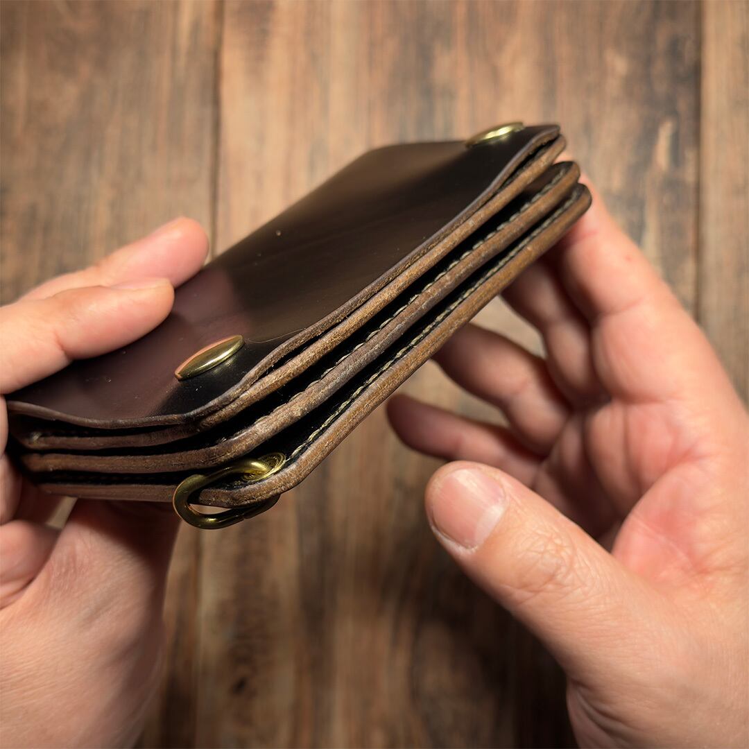Horween社クロムエクセルレザーを贅沢に使用した、三春レザーオリジナルのショートトラッカーウォレット。